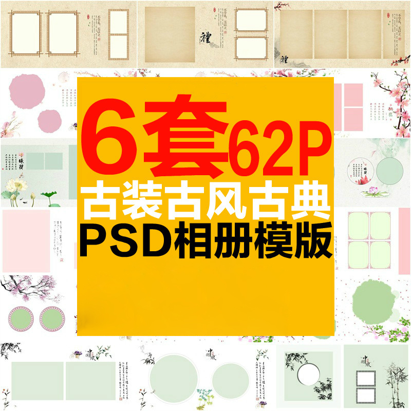 古装复古写真PSD相册模版儿童宝宝成长纪念册中式背景后期排版