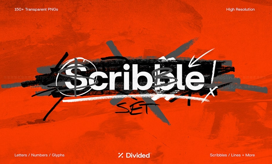 【PNG素材】150款手写涂鸦字母符号图形线条创意设计